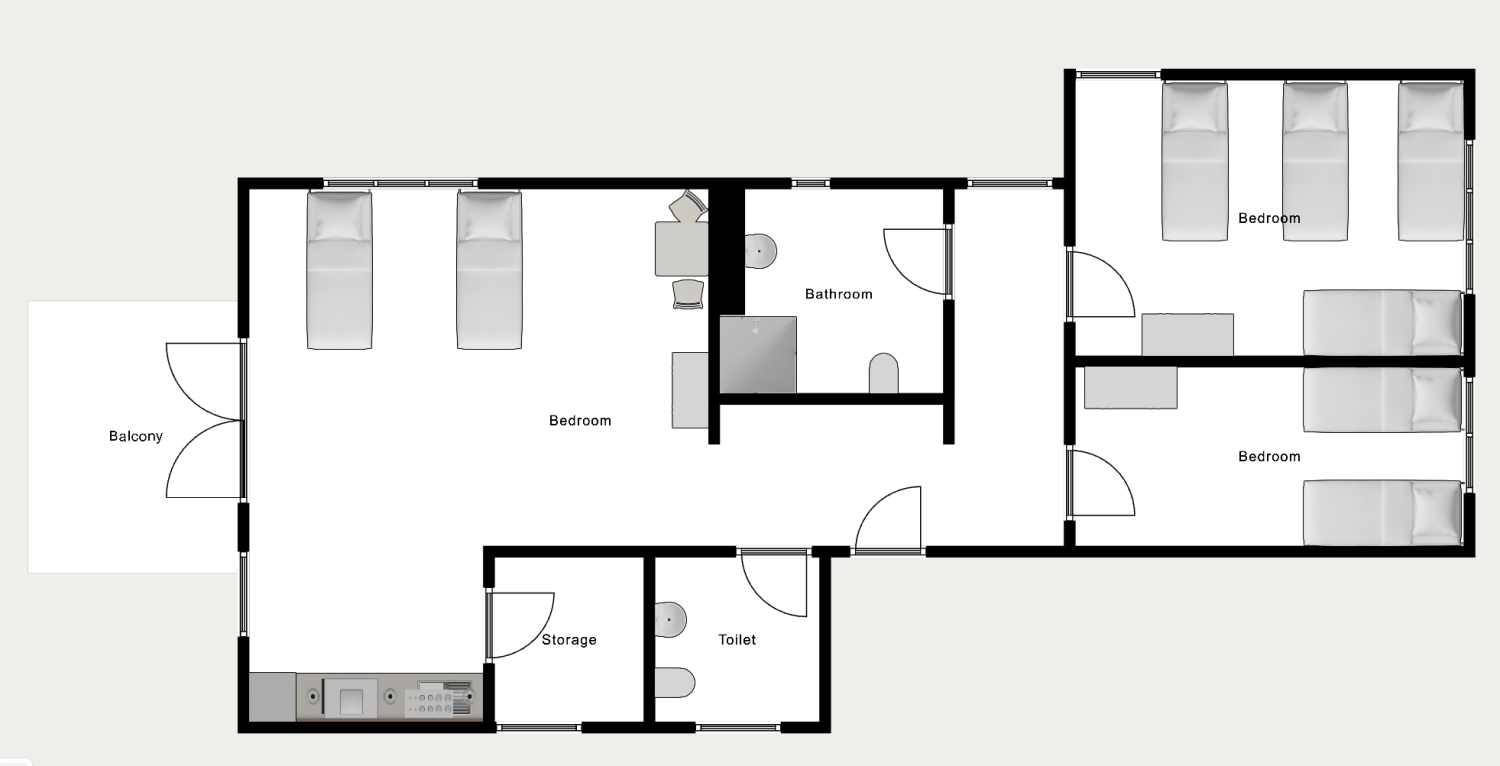 Kuchyňa: chladnička s mrazničkou , umývačka riadu , rúra , mikrovlnná rúra , kávovar , rýchlovarná kanvica , hrnce , panvice , sada nožov , riad , poháre , šálky , príbory , rôzne kuchynské potreby , papier na pečenie , korenie , káva , kávový filter , olej , cukor a sladidlo